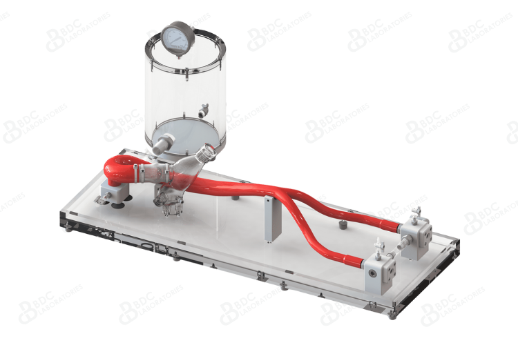 BDC Laboratories designs customizable simulated use solutions to evaluate transcatheter aortic valve replacement (TAVR/TAVI) implants and procedures for treating aortic valve stenosis. This system features the left ventricle, functional silicone aortic valve, aortic arch, descending aorta, and femoral arteries. Integrated hemostatic valves at the femoral arteries and transapical site facilitate advancement and delivery of TAVR implants. Our team can also configure models with calcified valves and additional access points as needed.