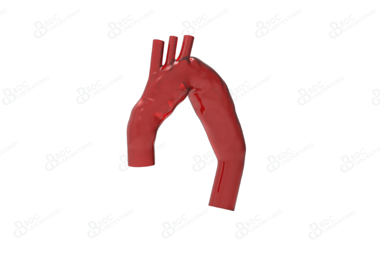 A silicone ‘gothic’ aortic arch model with main branch vessels present representative of diseased vasculature. This silicone arterial vasculature model is suitable for development, testing, marketing and physician training purposes for aortic arch related interventional devices. Upon request, the BDC team can integrate a custom aneurysm or dissection into this vasculature at any location.