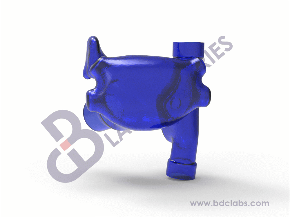 Inferior vena cava (IVC), right atrium, superior vena cava (SVC) and left atrium with transeptal hole present representative of healthy vasculature. This silicone venous vasculature model is suitable for development, testing, marketing and physician training purposes for transeptal crossing devices. Upon request, the BDC team can customize the size and location of the transeptal hole for access from the right to left atrium.