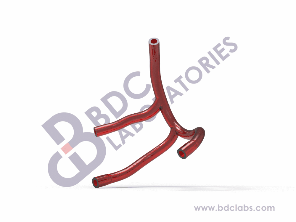 Right coronary artery (RCA) with multiple branches present, representative of healthy vasculature. This silicone right coronary artery model is suitable for development, testing, marketing and physician training purposes for coronary interventional devices. Upon request, the BDC team can integrate a custom calcified lesion(s) into the vasculature at any location(s).