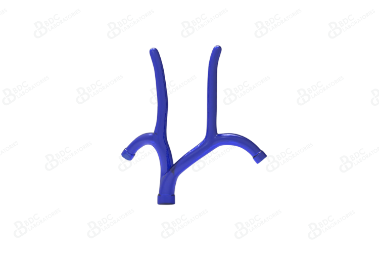 Superior vena cava (SVC) model with femoral veins representative of healthy vasculature. This silicone venous vasculature model is suitable for development, testing, marketing and physician training purposes for SVC and subclavian vein interventional devices.